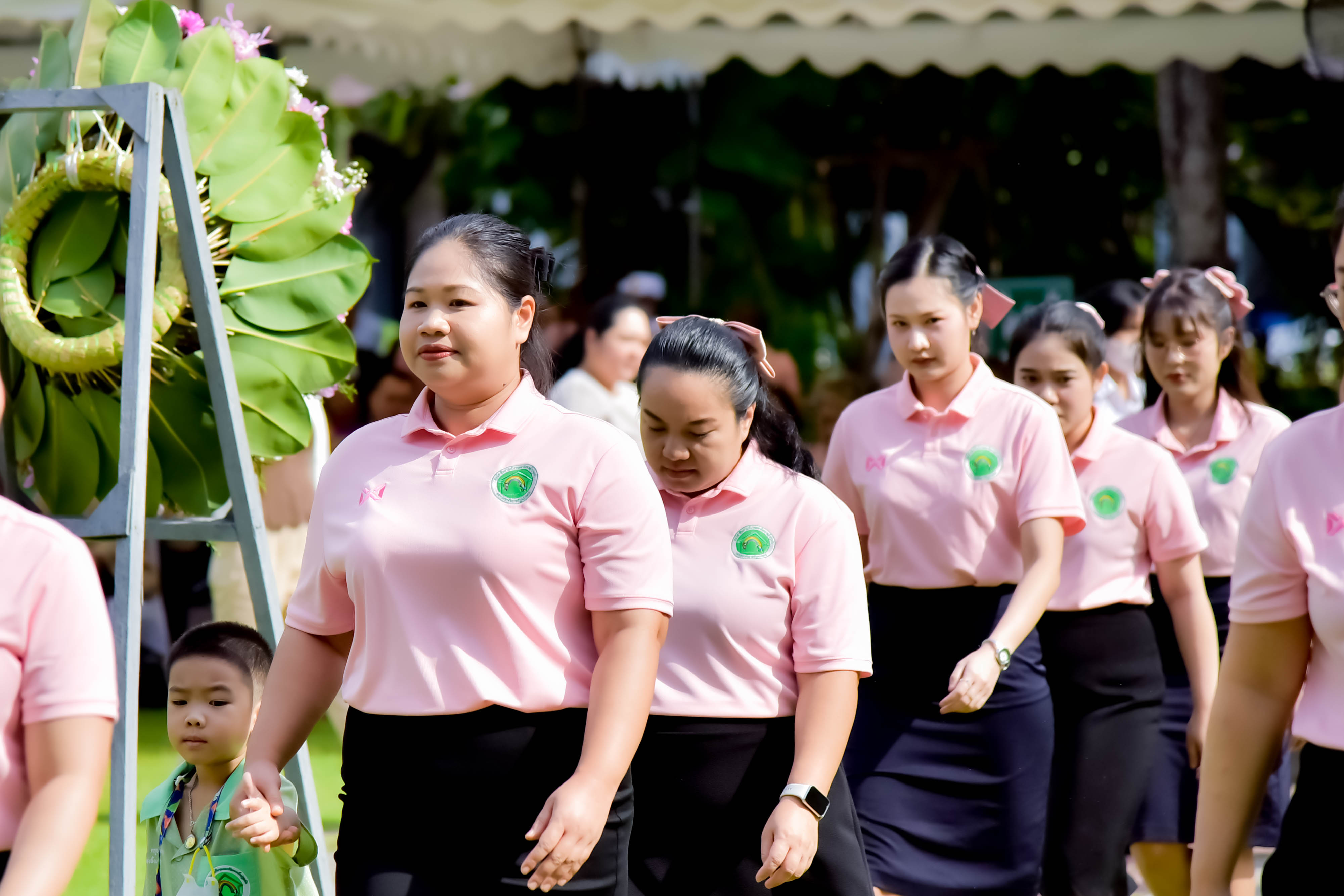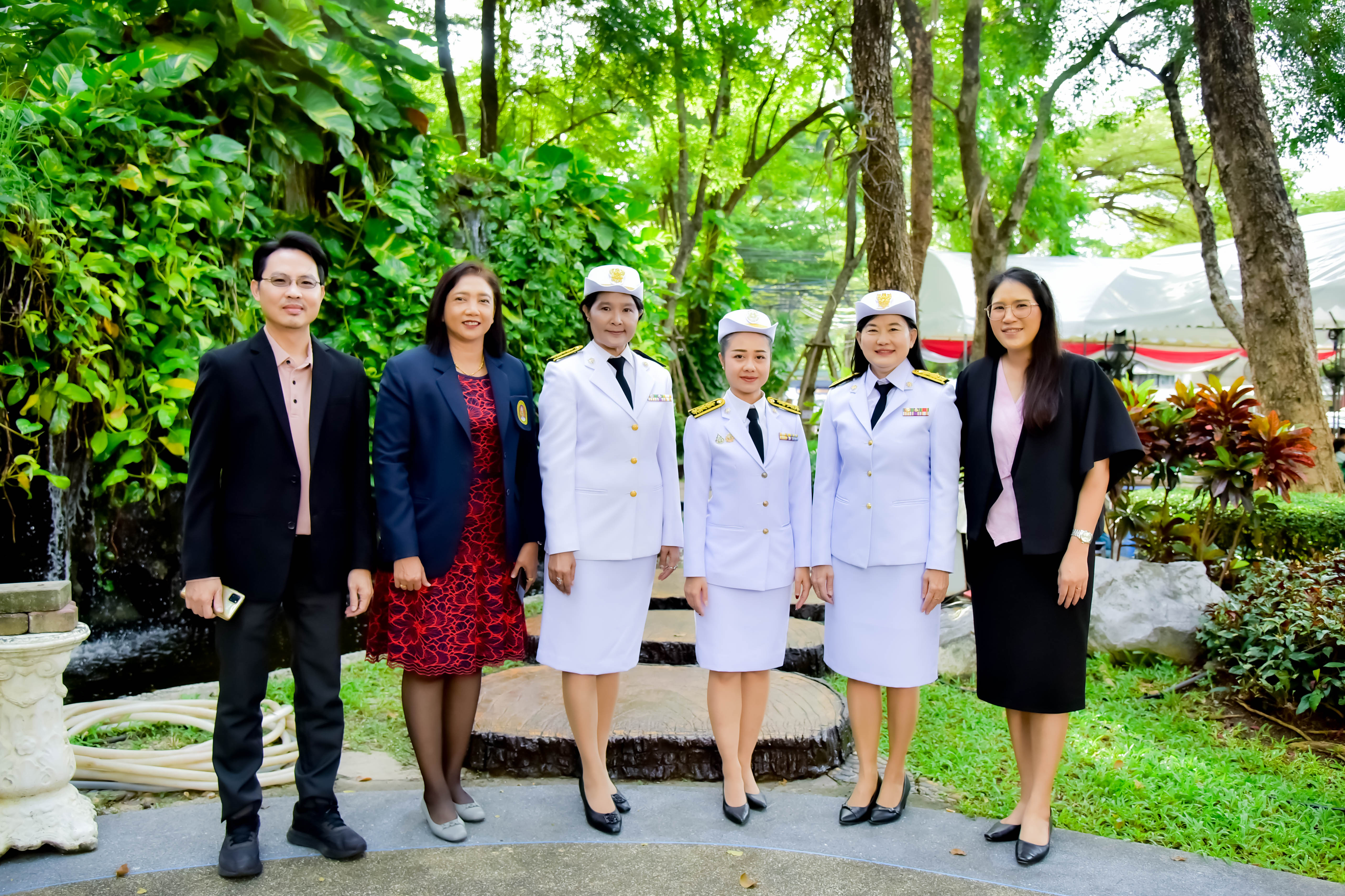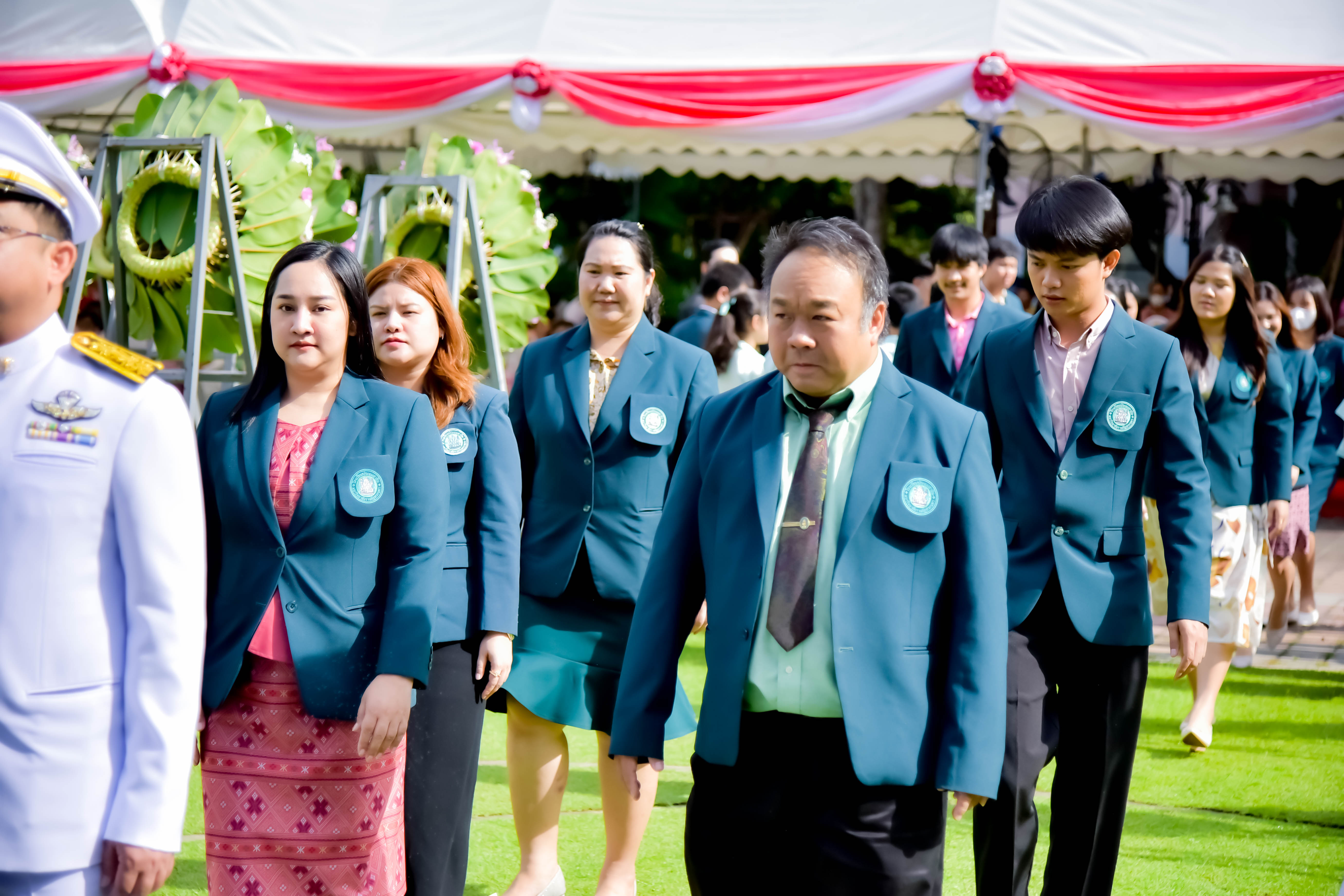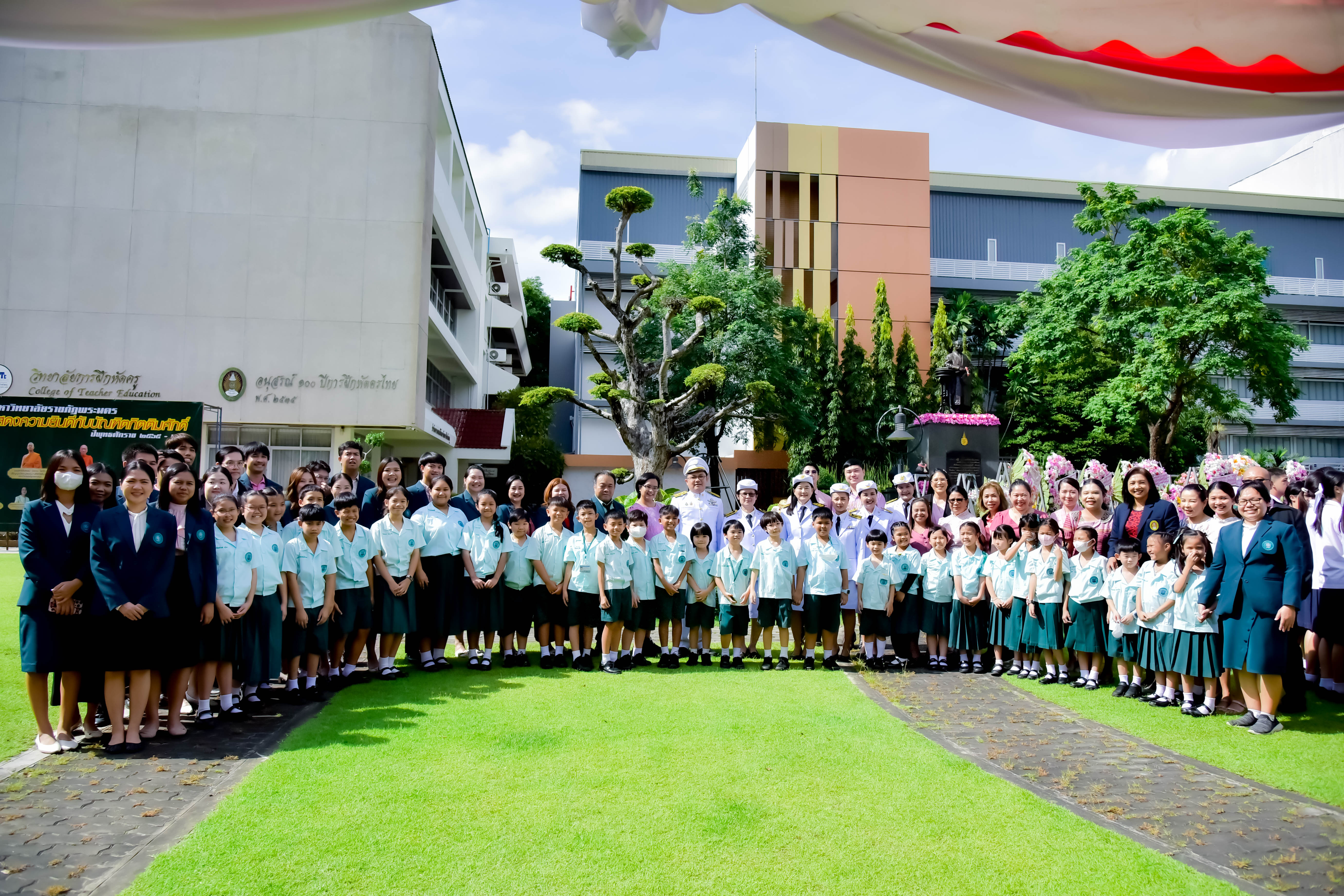 Assoc. Prof. Dr. Atcharawan Chanpensri, Dean of the College of Teacher Education, led university executives, faculty representatives, student delegates, and affiliated demonstration schools ,including Wat Phra Sri Mahathat Demonstration School, PNRU Demonstration Elementary School, and the Early Childhood Development Demonstration Center, to pay homage at the King Rama V Monument on campus.