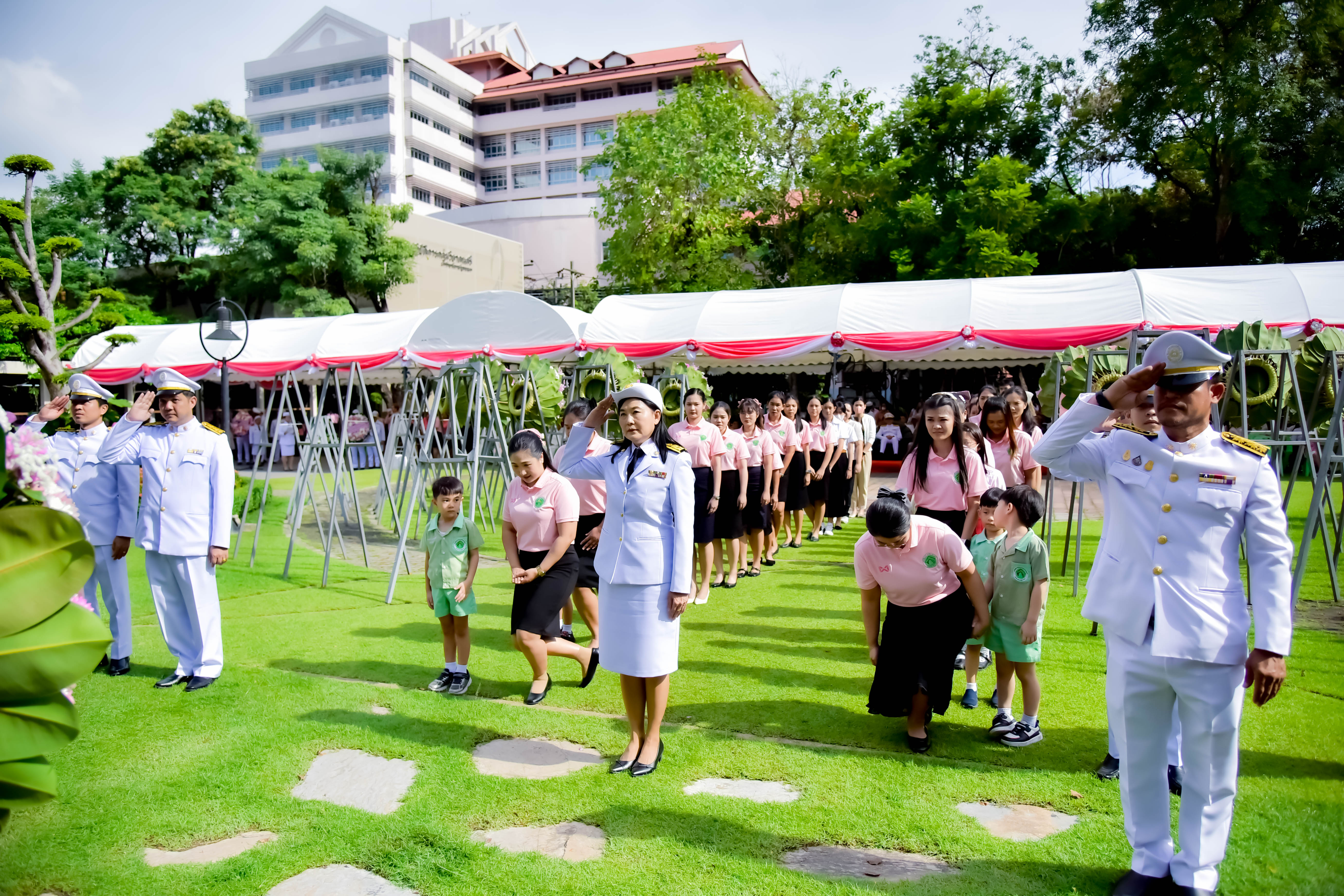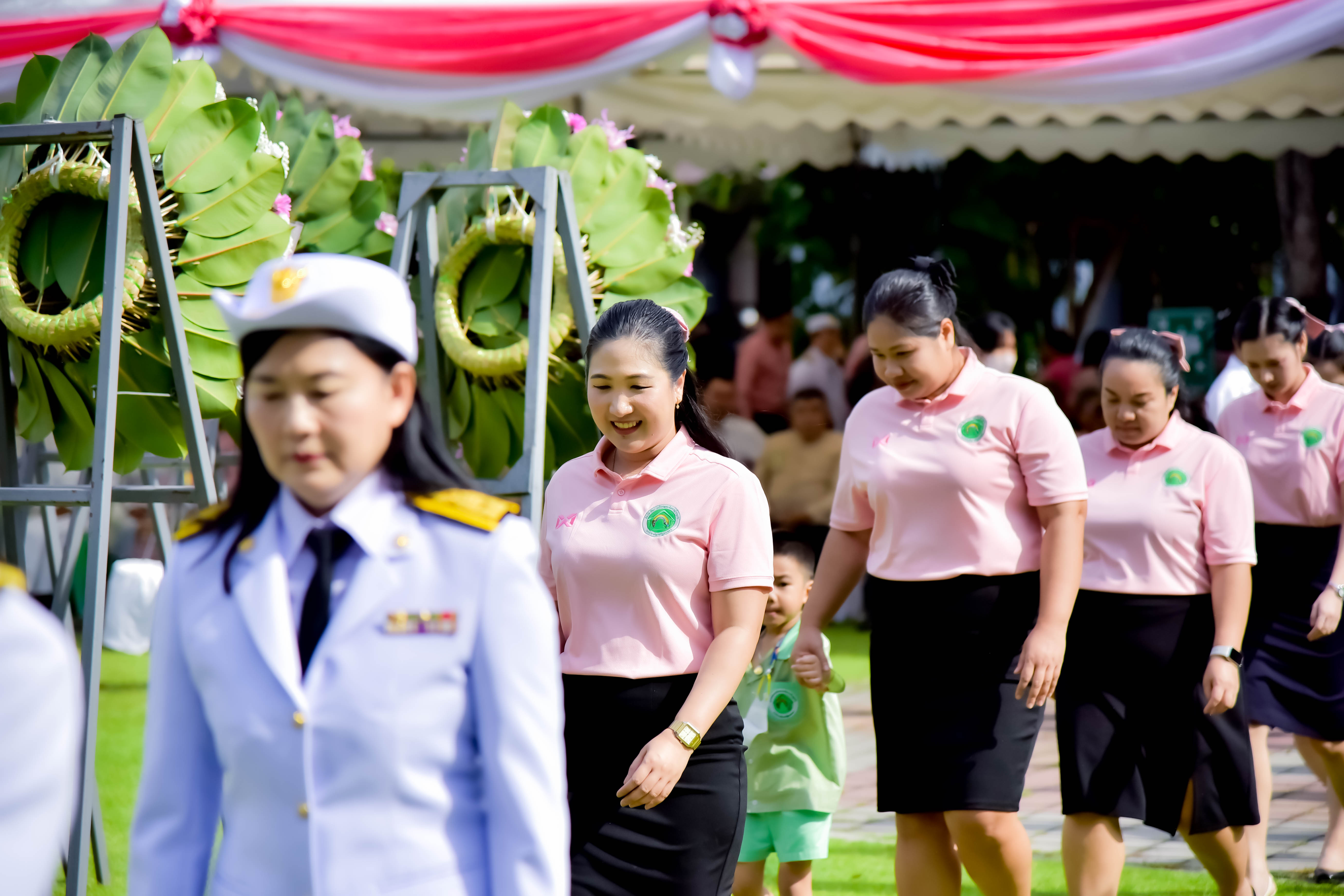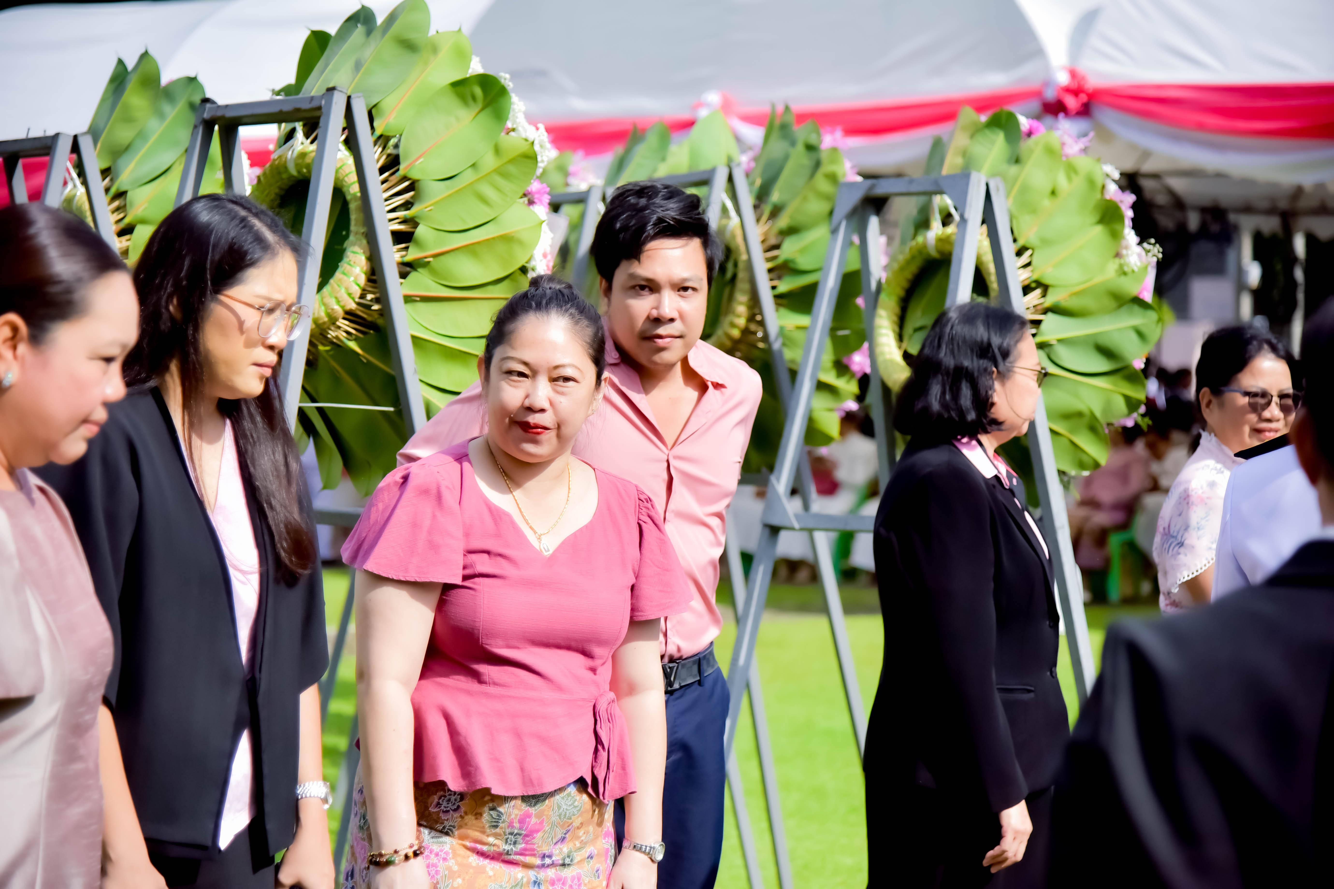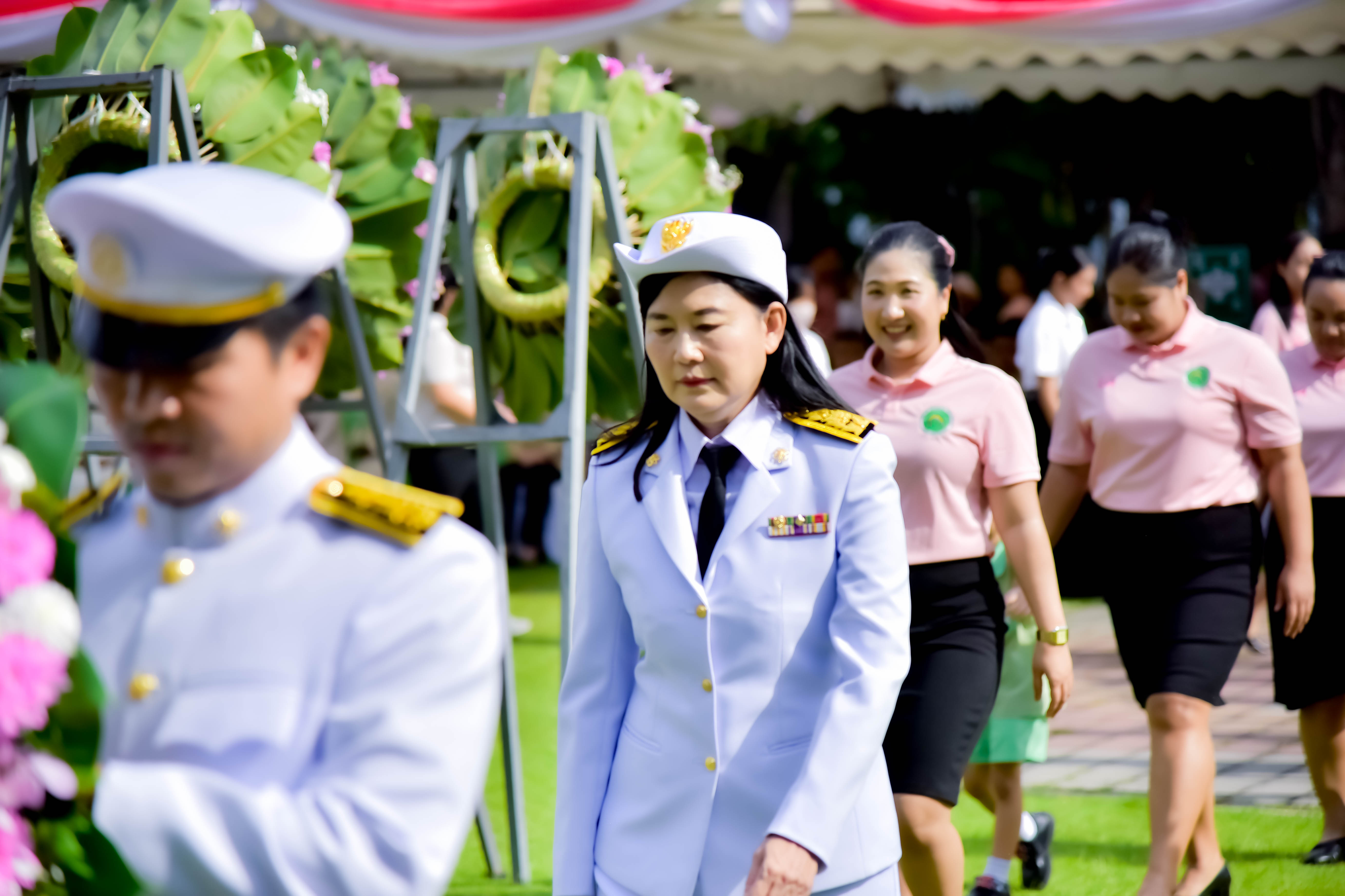 Assoc. Prof. Dr. Atcharawan Chanpensri, Dean of the College of Teacher Education, led university executives, faculty representatives, student delegates, and affiliated demonstration schools ,including Wat Phra Sri Mahathat Demonstration School, PNRU Demonstration Elementary School, and the Early Childhood Development Demonstration Center, to pay homage at the King Rama V Monument on campus.