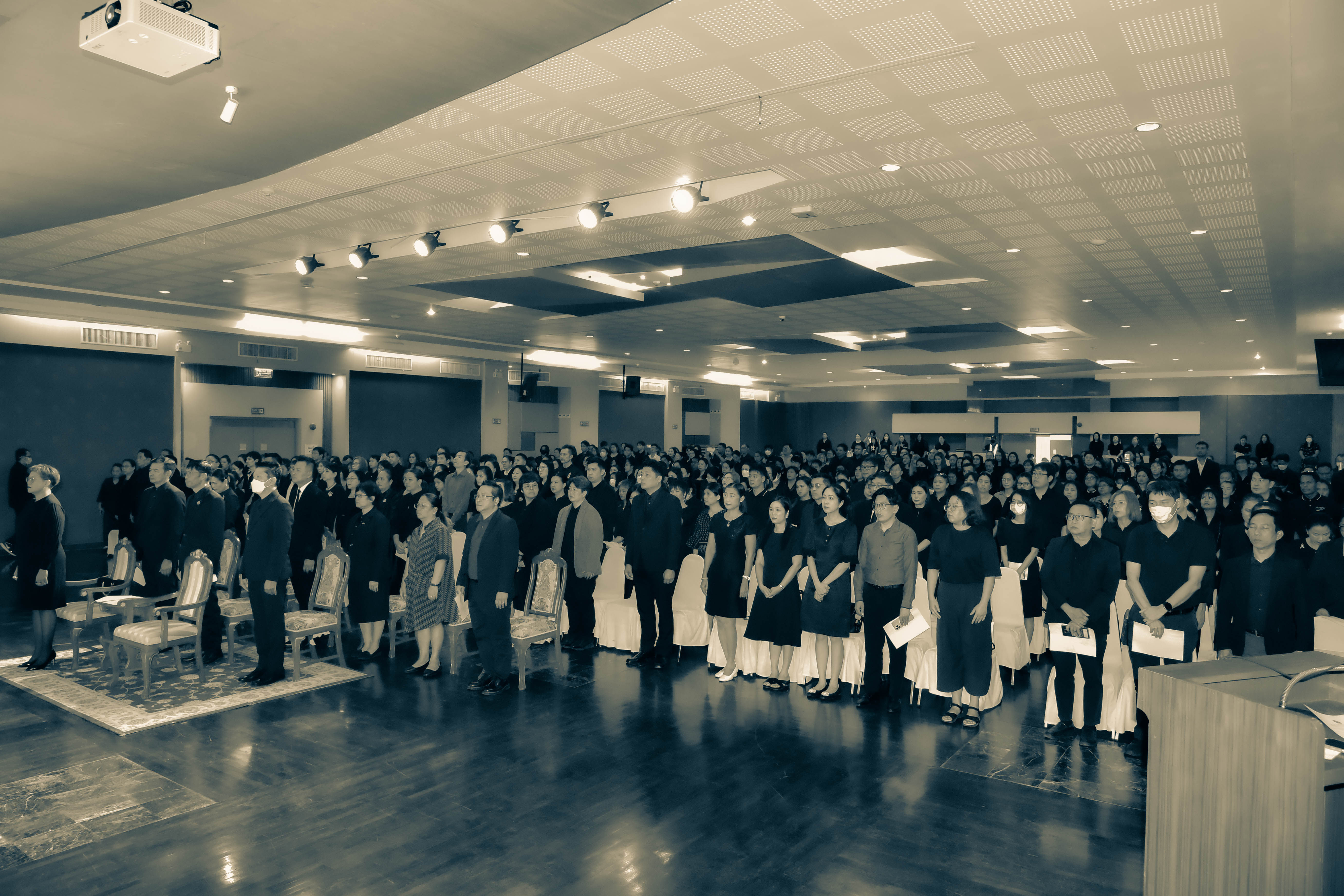 สักการะและร่วมกันร้องเพลง “สรรเสริญพระบารมี” ณ หอประชุมพิฆเนศวร