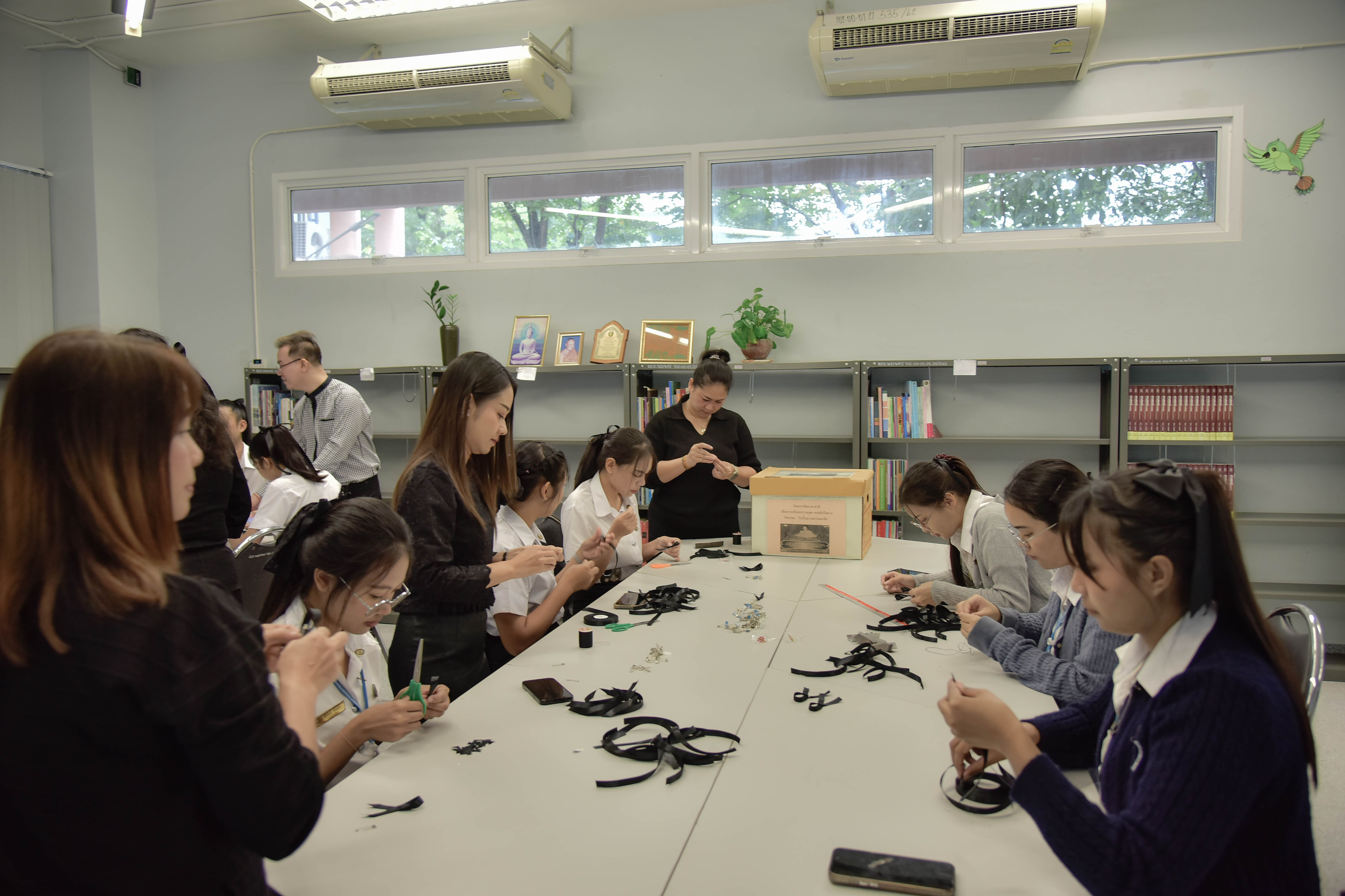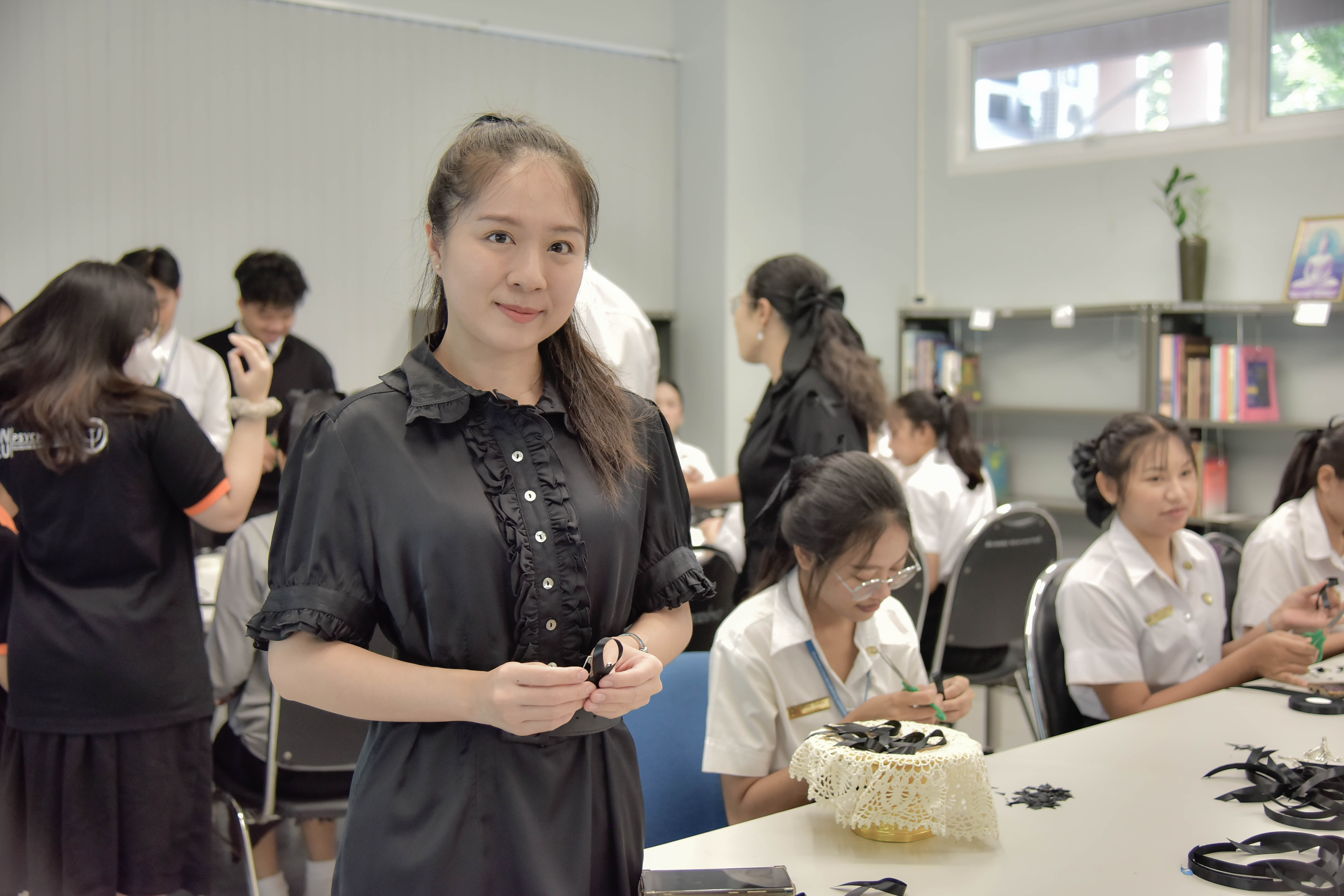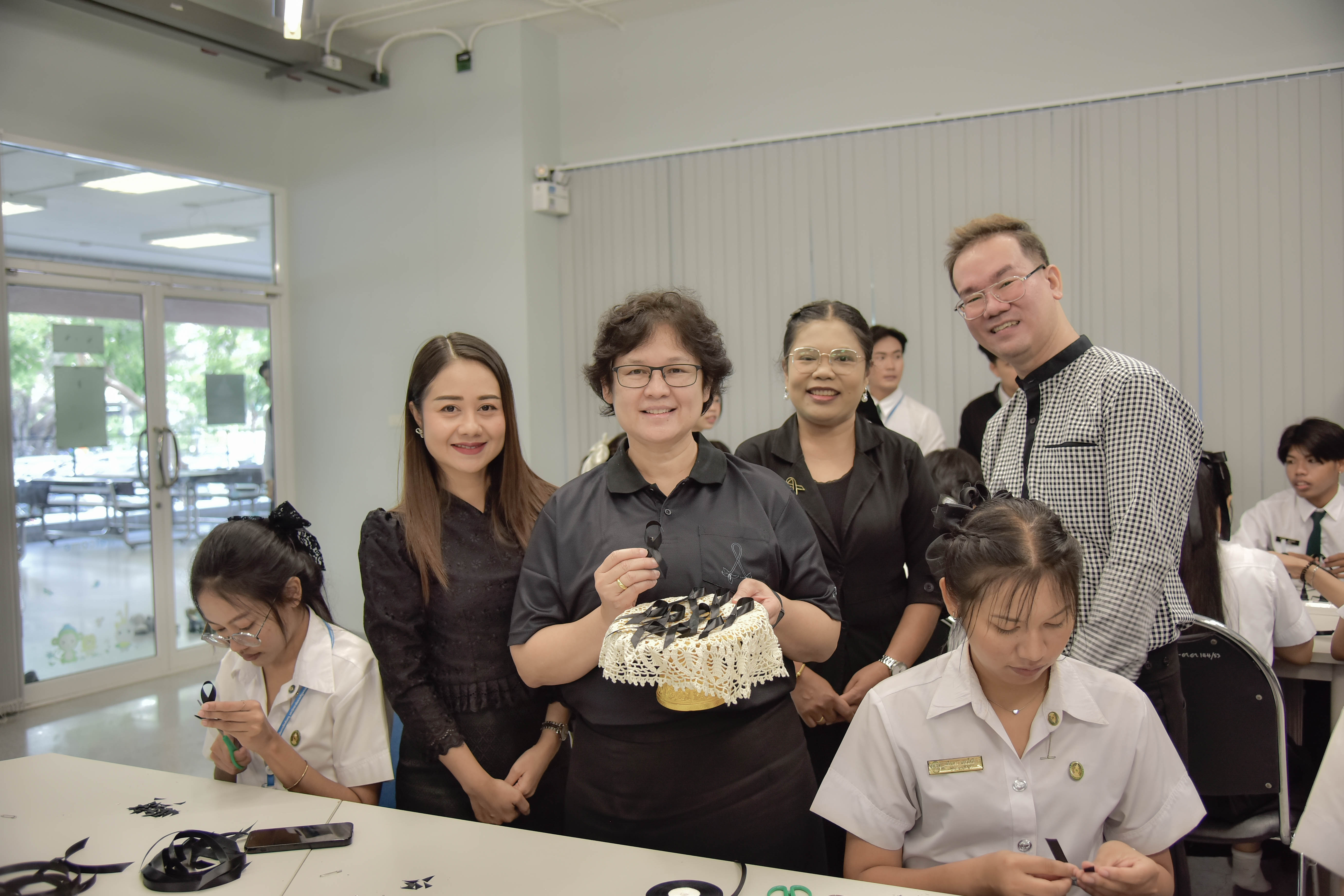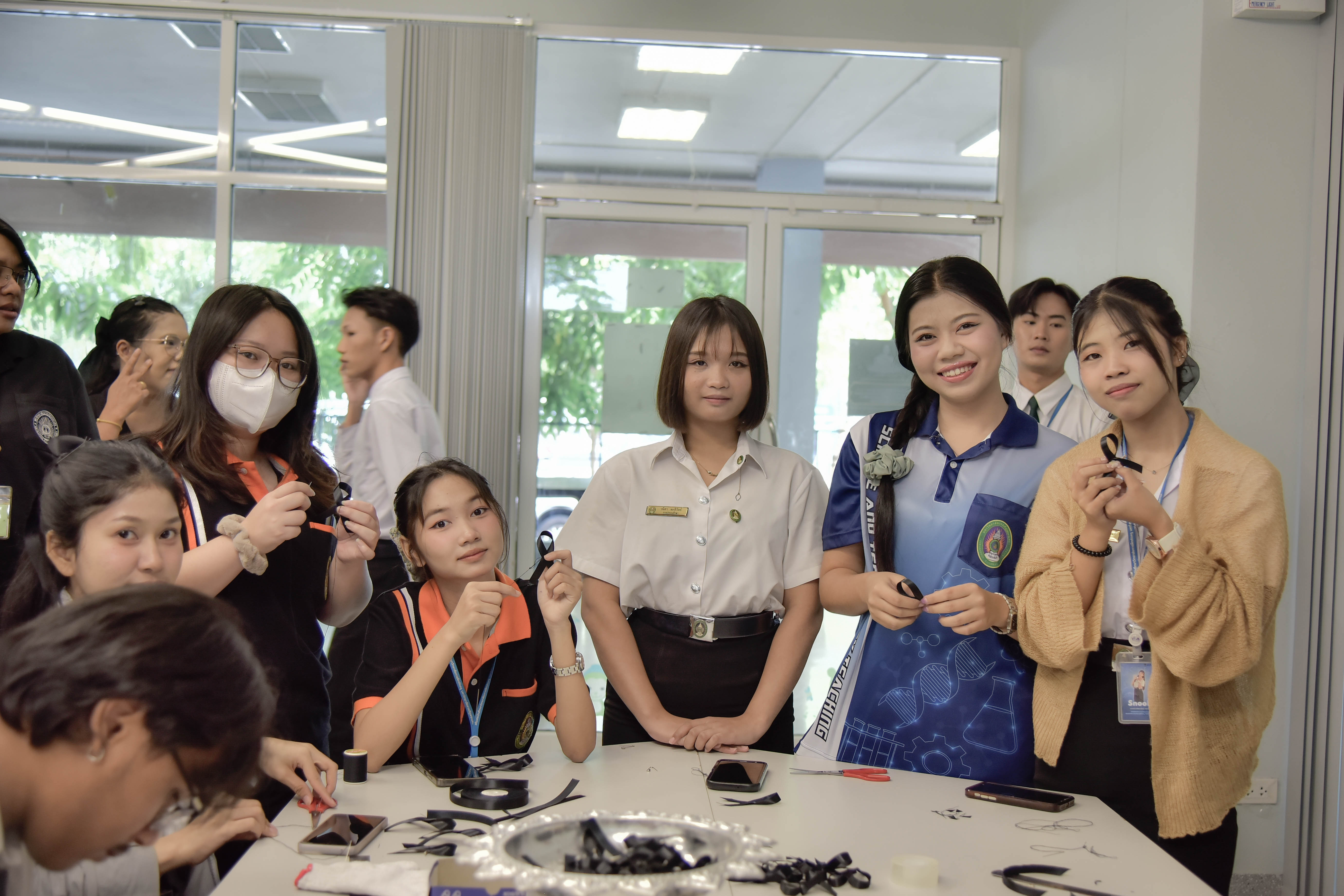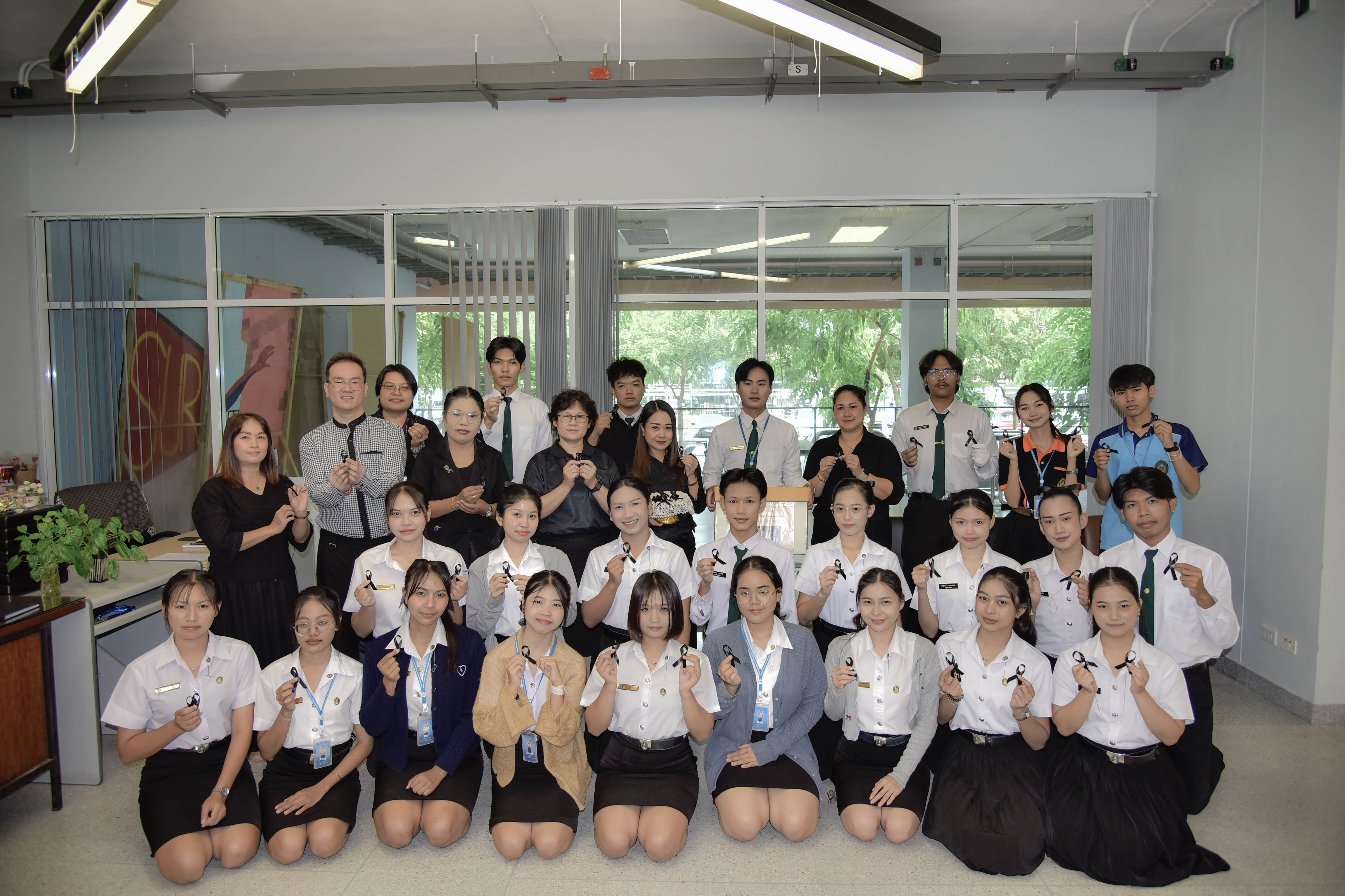 The initiative, led by the Office of Student Affairs and the Student Council, was designed to express loyalty, gratitude, and remembrance of Her Majesty Queen Sirikit The Queen Mother. Faculty members, staff, and students joined together to craft black ribbons, which were distributed to the university community and the public as a symbol of respect and unity