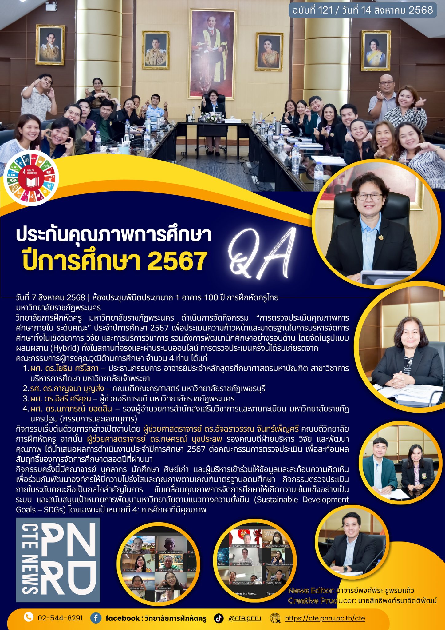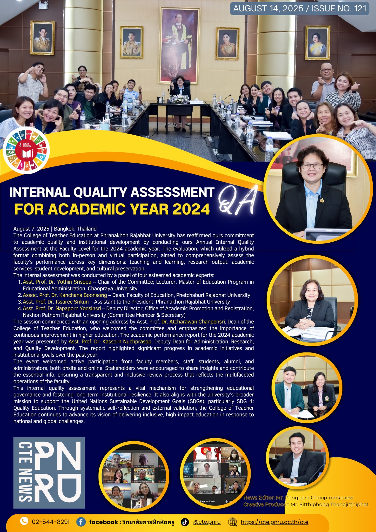 The College of Teacher Education at Phranakhon Rajabhat University has reaffirmed ours commitment to academic quality and institutional development by conducting ours Annual Internal Quality Assessment at the Faculty Level for the 2024 academic year. The evaluation, which utilized a hybrid format combining both in-person and virtual participation, aimed to comprehensively assess the faculty’s performance across key dimensions: teaching and learning, research output, academic services, student development, and cultural preservation.