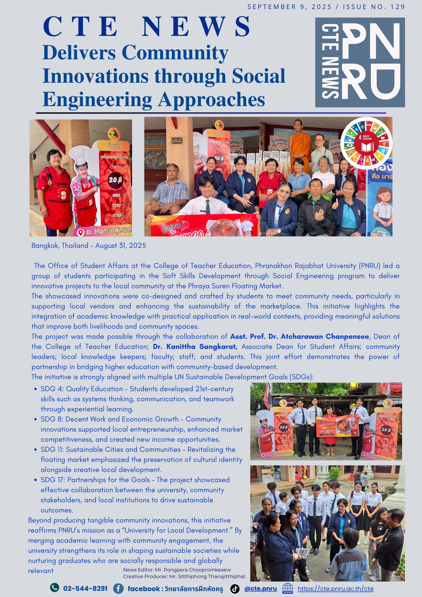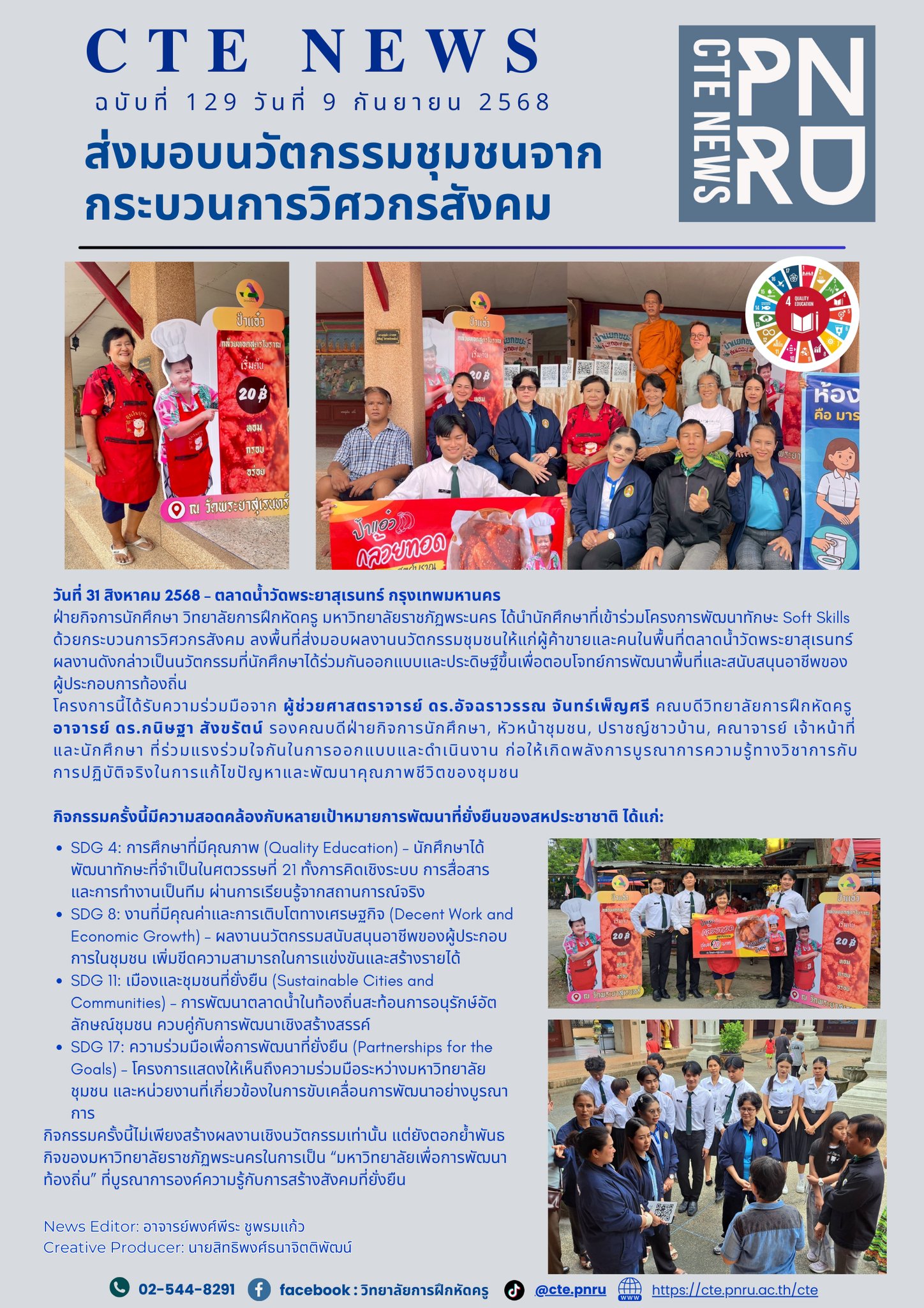 - SDG 4: การศึกษาที่มีคุณภาพ (Quality Education) – นักศึกษาได้พัฒนาทักษะที่จำเป็นในศตวรรษที่ 21 ทั้งการคิดเชิงระบบ การสื่อสาร และการทำงานเป็นทีม ผ่านการเรียนรู้จากสถานการณ์จริง