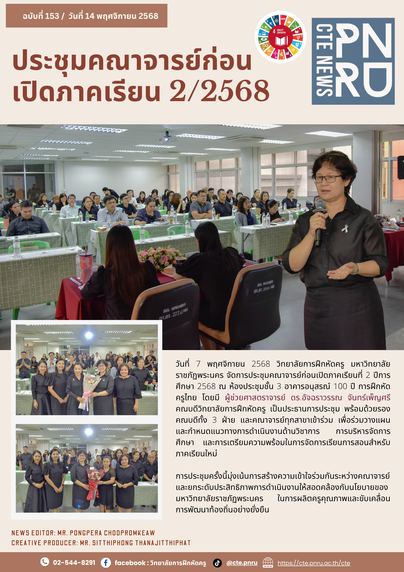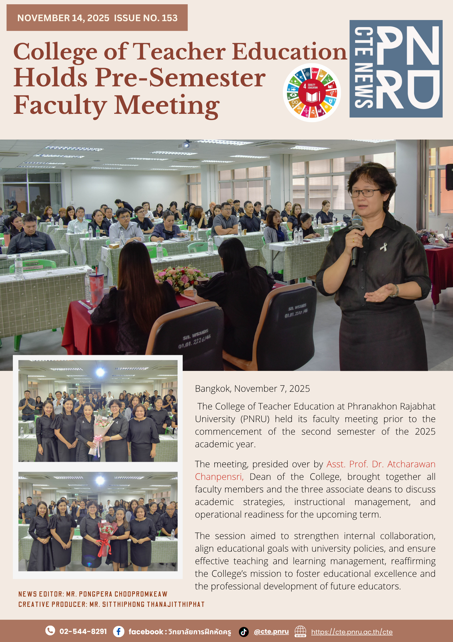 The College of Teacher Education at Phranakhon Rajabhat University (PNRU) held its faculty meeting prior to the commencement of the second semester of the 2025 academic year.