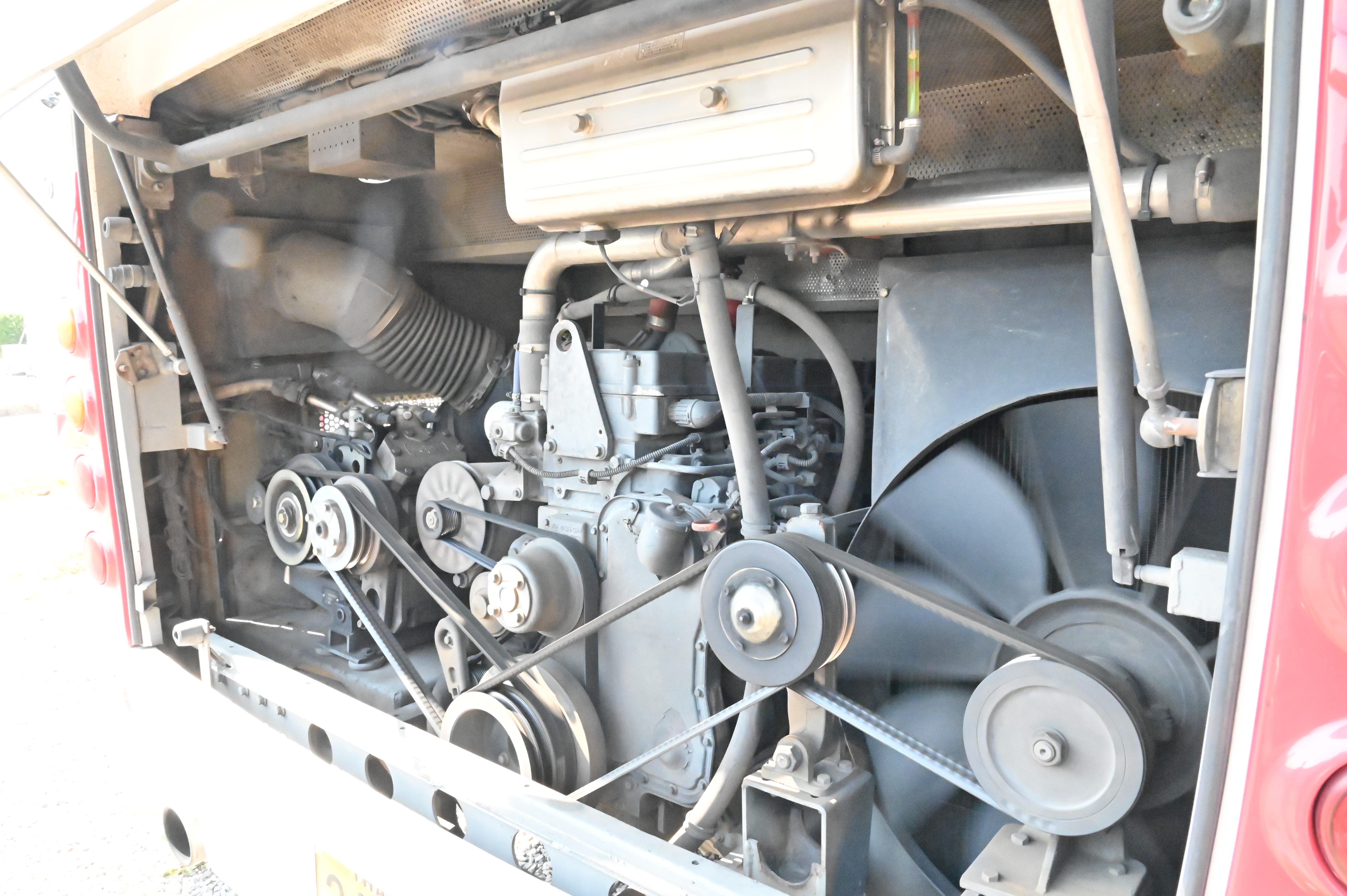 1. สภาพทั่วไปของรถบัส ตรวจสอบสภาพตัวถังรถ ประตู–หน้าต่าง ความแข็งแรงของโครงสร้าง ความสะอาด และความเรียบร้อยภายในรถ พบว่าอยู่ในสภาพสมบูรณ์ ไม่มีส่วนใดชำรุด