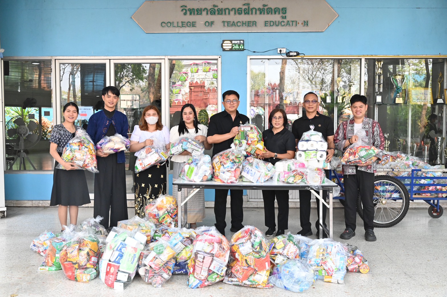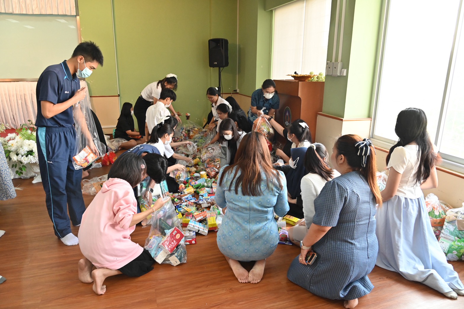 ในครั้งนี้ คณะครูและนักเรียนได้ร่วมกันนำสิ่งของอุปโภค บริโภค และของใช้จำเป็นในชีวิตประจำวัน อาทิ ยาสามัญประจำบ้าน ข้าวสาร อาหารแห้ง เครื่องดื่ม น้ำผลไม้แบบกล่อง ขนมแห้ง ยาสีฟัน ผงซักฟอก น้ำยาล้างจาน ฯลฯ เพื่อมอบให้กับ มูลนิธิบ้านราชาวดี (ชาย) อ.ปากเกร็ด จ.นนทบุรี